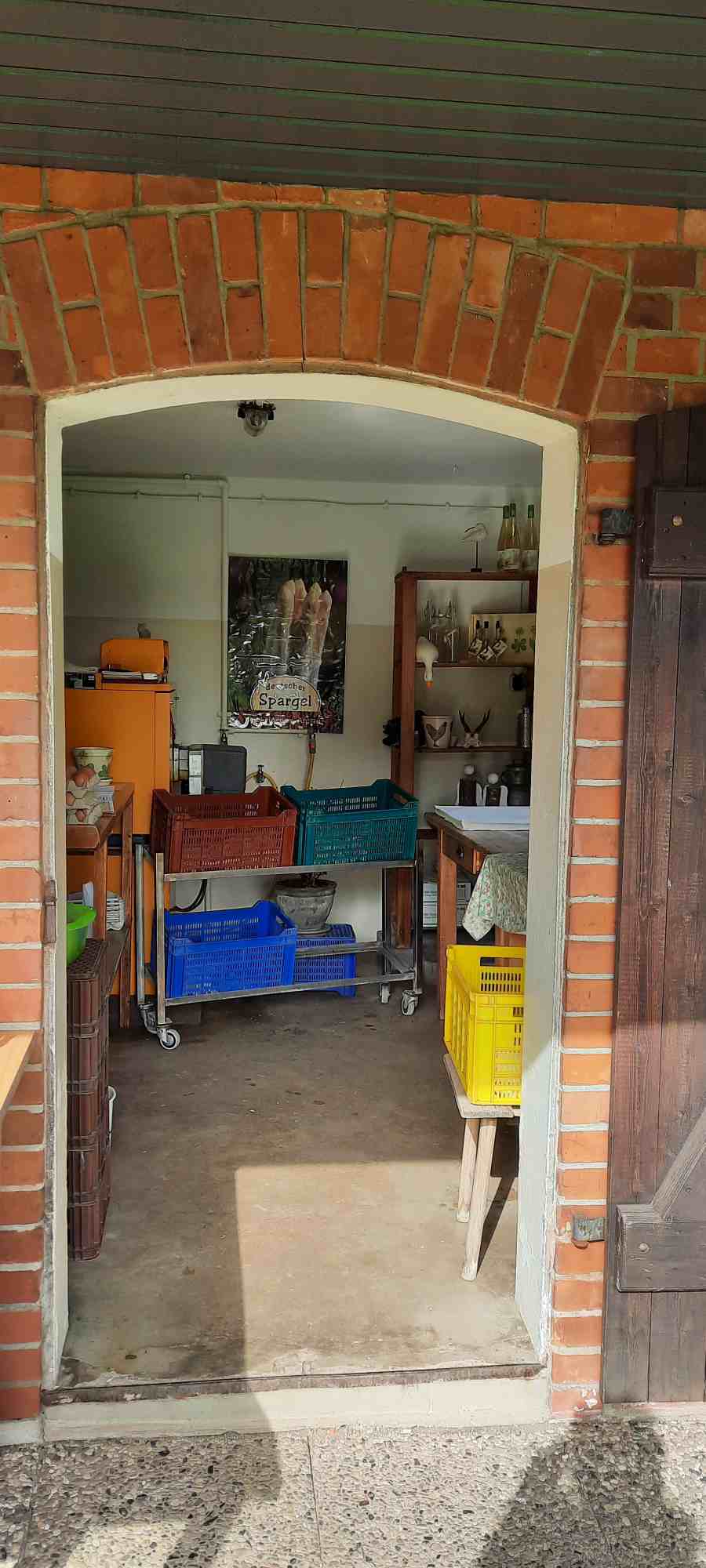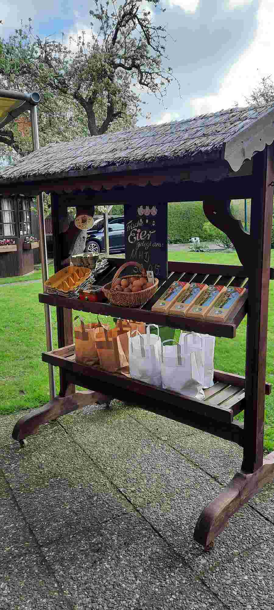 Außerhalb der Spargelzeit können Sie sich bei uns im Hofladen an Eiern, Kartoffeln und Honig selbst bedienen.