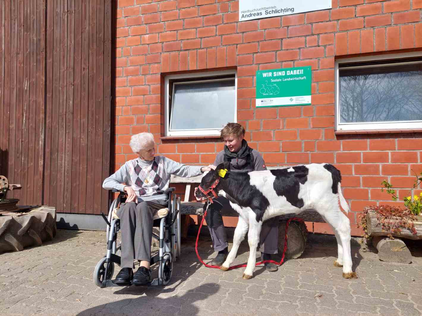 Wir haben uns bei der Landwirtschaftskammer Schleswig-Holstein qualifiziert, soziale Angebote auf unserem Hof anzubieten. Elisabeth und Charlotte sind zertifizierte Bauernhofpädagogen und Charlotte ist Physiotherapeutin mit der Zusatzqualifikation Fachkraft für tiergestützte Intervention.
